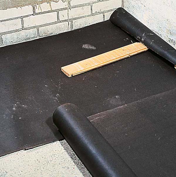 Das Dämmaterial wird gegen aufsteigende Feuchtigkeit mit einer Lage Öl- oder Teerpapier geschützt, die 10 cm überlappen.