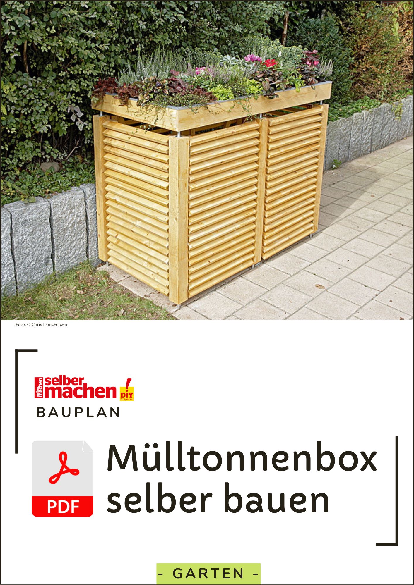 Unsere Partner von Lets Bastel haben passend zum Thema ein schickes Mülltonnenhäuschen gebaut. Dazu steht eine komplette mehrseitige Bauanleitung über den Lets-Bastel-Shop für Sie bereit. Selber machen Leser bekommen dort mit dem Code "SELBERMACHEN15" exklusiv 15 Prozent Rabatt auf Baupläne sowie Kurse. Klicken Sie auf den unten stehenden Link, wird der Rabatt automatisch auf Ihren Warenkorb angewendet.